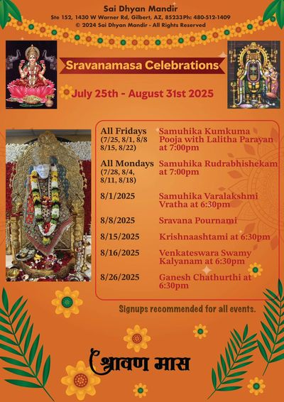 All Devotees are welcome to participate in Sravana Month special rituals.